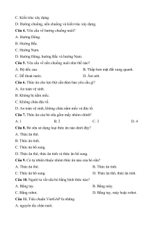 Câu 3. Chuồng nuôi có yêu cầu chung nào dưới đây? A. Hướng chuồng. B. Nền chuồng. C. Kiến trúc xây dựng.
