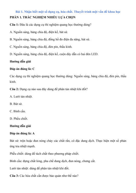 Bài 1. Nhận biết một số dụng cụ, hóa chất. Thuyết trình một vấn đề khoa học