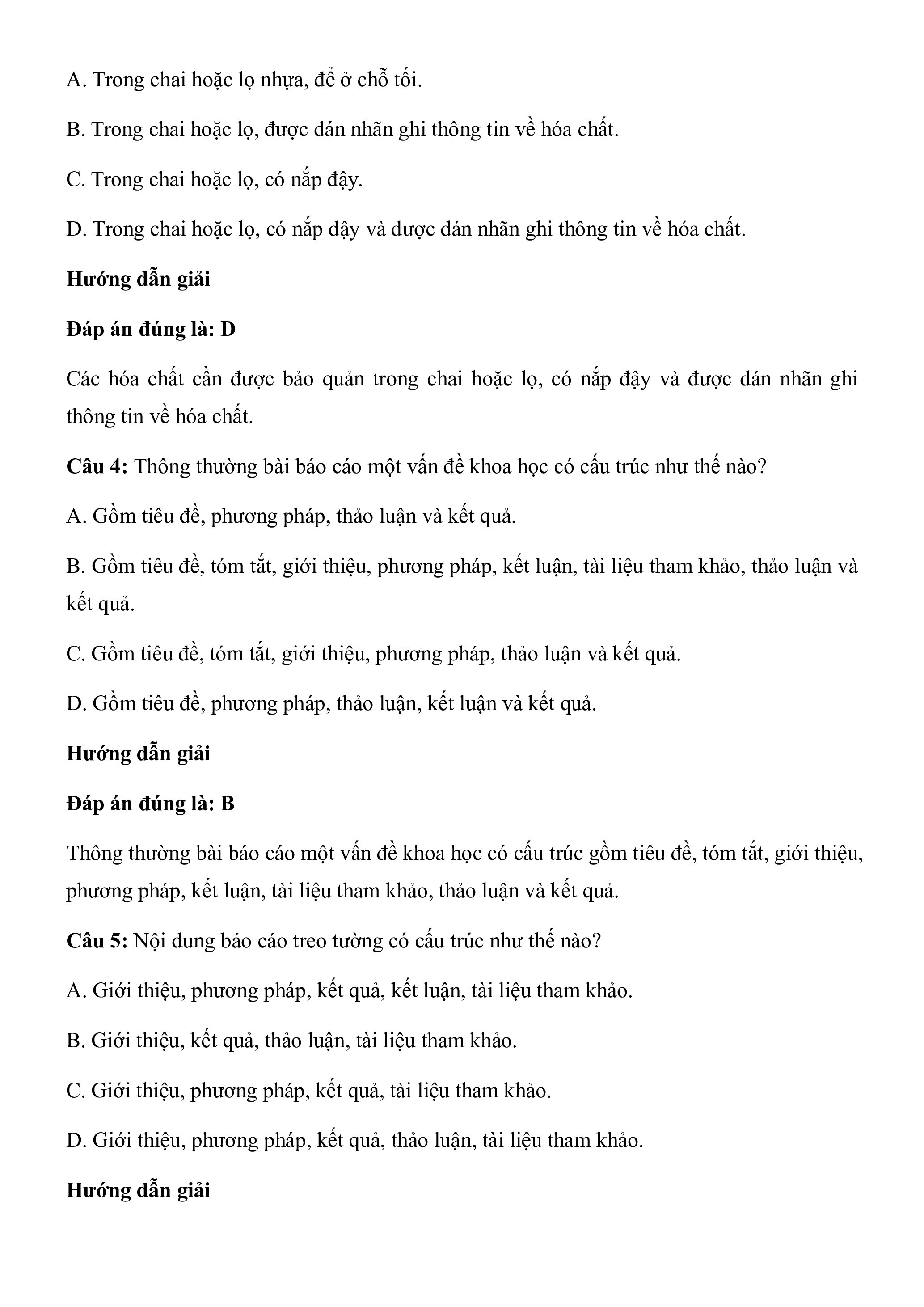Câu 4: Thông thường bài báo cáo một vấn đề khoa học có cấu trúc như thế nào?