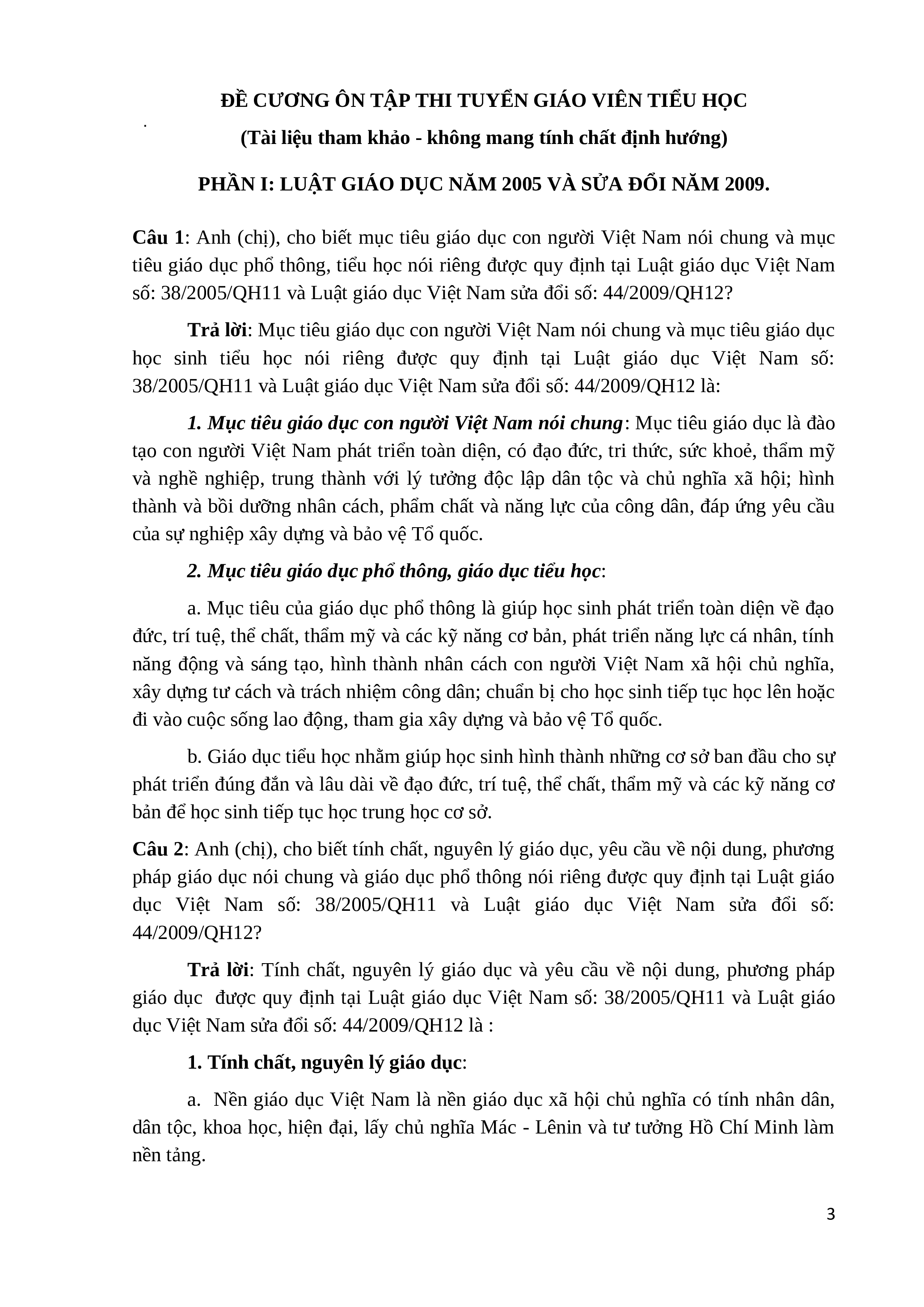 ĐỀ CƯƠNG ÔN THI GIÁO VIÊN TIỂU HỌC 1 MỤC LỤC