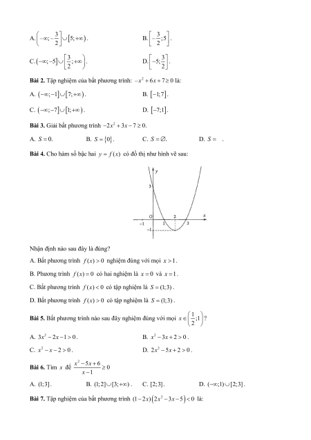 Bài 2. Tập nghiệm của bất phương trình: 2