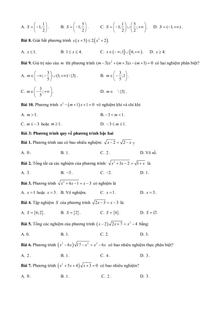 x 3x 2 1 x là A. 3. B. 3 . C. 2 . D. 1. Bài 3. Phương trình 2