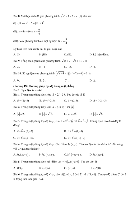 Chương IX: Phương pháp tọa độ trong mặt phẳng