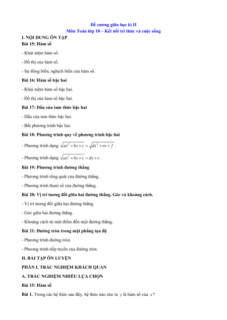 A. TRẮC NGHIỆM NHIỀU LỰA CHỌN Bài 15: Hàm số