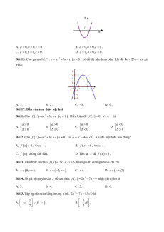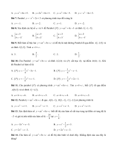 có đỉnh I 1;2. Tính a b c . A. 3. B. 3 . C. 2 . D. 1 . 2 2 Bài 10. Cho Parabol: 2