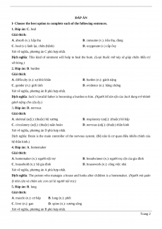 Dịch nghĩa: This kind of ointment will help to heal the burn. (Loại thuốc mỡ này sẽ giúp chữa /điều trị vết bỏng.) 2. Đáp án: B. burden Giải thích: