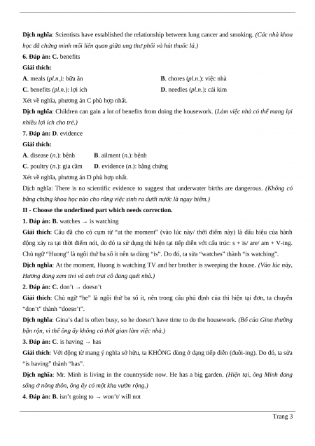 4. Đáp án: B. isn’t going to → won’t/ will not Trang 3