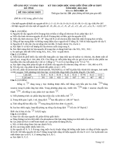 SỞ GIÁO D C Ụ VÀ ĐÀO T O Ạ KỲ THI CH N Ọ H C Ọ SINH GI I Ỏ T N Ỉ H L P Ớ 10 THPT HÀ TĨNH NĂM HỌC 2022-2023 Môn thi: HÓA HỌC 10 Đ Ề THI CHÍNH TH C Ứ Th i