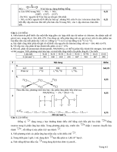 298 = 4.EN–H + 1.EN–N + 1.EN=N +3.EN–O + 1.EN=O - 2ENN -4.EH–O – 1.EO=O = 0,75 - 893 (kJ·mol–1). Câu 3. (2,0 điêm) 131 130 Đ n ồ g vi I Te 53 dung trong y h c o thư n ờ g đư c ơ đi u ề chế b n ằ g cách b n ắ phá bia ch a ư 52 b n ằ g 130 neutron trong lò ph n ả n ư g h t ạ nhân. Trong phư n ơ g pháp này, trư c ớ tiên Te 52 nh n ậ 1 neutron chuy n ê hóa 131 131 thành Te I 52 , r i ồ đ ng v ồ nà i