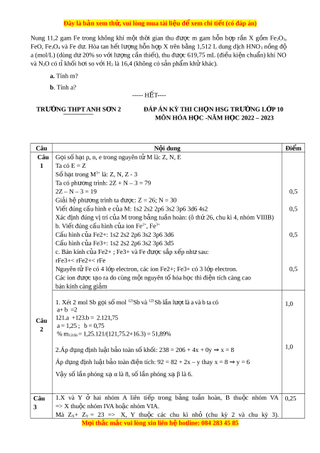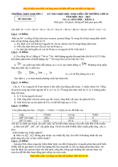 ớ H2 là 16,4 (không có s n ph ả ẩm kh khá ử c). a. Tính m? b. Tính a? ----- HẾT---- TRƯ N Ờ G THPT ANH S N Ơ 2 ĐÁP ÁN KỲ THI CH N Ọ HSG TRƯ N Ờ G L P Ớ 10 MÔN HÓA H C Ọ -NĂM H C Ọ 2022 – 2023 Câu Nội dung Đi m ể Câu G i ọ s h