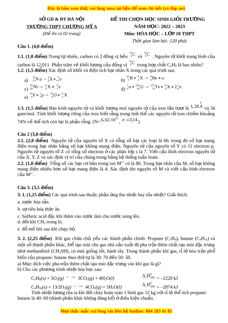 - Tailieugiaovien.com.vn giới thiệu Đề HSG Hóa 10 Trường THPT Chương Mỹ A năm 2023 có đáp án.