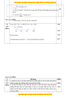ắ chỉ chiếm 74% thể tích trong tinh thể nên kh i ô lư ng ợ riêng đúng c a u sắt là 74 3 d ' 1 0, 59 7 ,84(g / cm ) 100 Câu 2. (1,5 đi m) ể V t