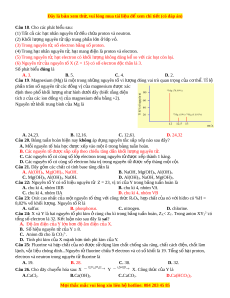 ế heo chiều tăng dần kh i ố lư ng nguyê ợ n t . ử C. Các nguyên t c ố ó cùng s l ố p e ớ lectron trong nguyên t đ ử ư c ợ x p t ế hành 1 hàng. D. Các nguyên t c ố ó cùng s e ố lectron hóa tr t ị rong nguyên t đ ử ư c ợ x p t ế hàng m t ộ c t ộ . Câu 21. Dãy g m