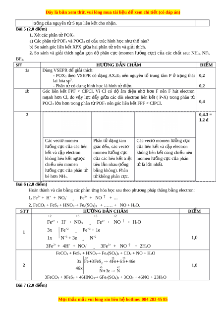 b) So sánh góc liên k t ế XPX gi a ữ hai phân t t ử rên và gi i ả thích. 2. So sánh và gi i ả thích ng n ắ g n ọ độ phân c c ự (momen lư ng ỡ c c ự ) c a ủ các ch t ấ sau: NH3, NF3, BF3. Bài 6 (2,0 đi m) ể
