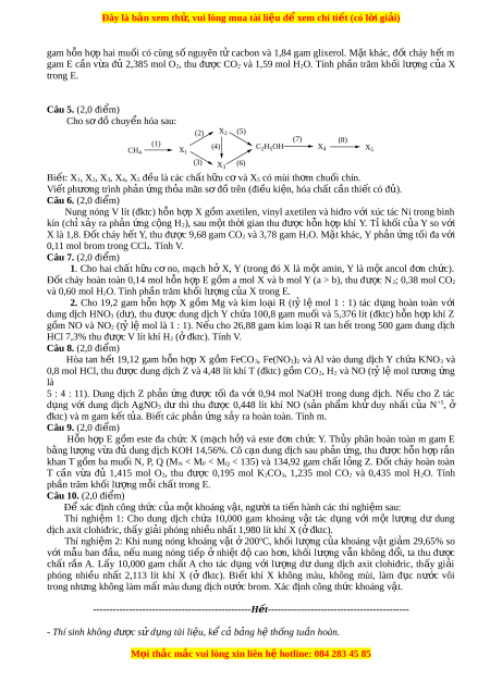 Biết: X1, X2, X3, X4, X5 đều là các chất h u c ữ ơ và X5 có mùi th m ơ chu i ố chín. Viết phư ng ơ trình phản ng t ứ hỏa mãn s đ ơ t ồ rên (đi u ki ề n, hóa ệ chất cần thi t ế có đ ). ủ Câu 6. (2,0 điểm) Nung nóng V lít (đktc) h n ỗ h p ợ X g m