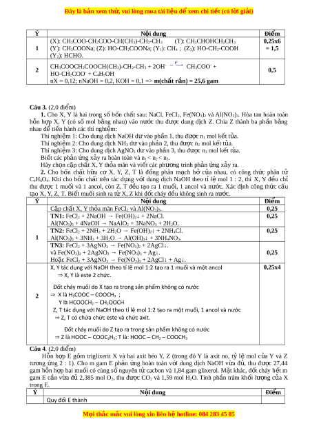 ố và 1 ancol, còn Z, T đ u ề t o ạ ra 1 mu i ố , 1 ancol và nư c ớ . Xác đ nh ị công th c ứ cấu tạo X, Y, Z, T. Biết mu i ố sinh ra từ X, Z khi đ t ố cháy đ u không s ề inh ra nước. Ý N i ộ dung Đi m ể Cặp chất X, Y th a ỏ mãn FeCl2 và Al(NO3)3. 0,25