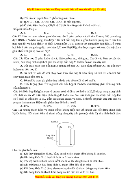 Đây là bản xem th , vu ử i lòng mua tài li u ệ đ xe ể m chi ti t ế (có l i ờ gi i ả ) (b) Tất c ả các peptit đ u ề có ph n ả n ứ g màu biure.