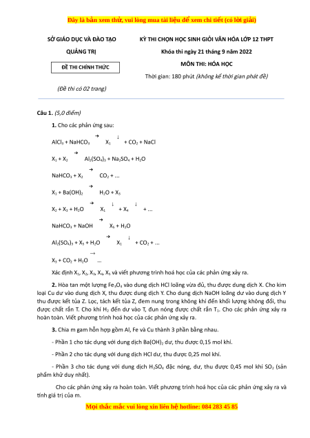 - Tailieugiaovien.com.vn giới thiệu Đề HSG Hóa 12 Quảng Trị năm 2023 có đáp án.