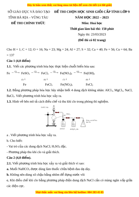 Đây là bản xem th , vu ử i lòng mua tài li u ệ đ xe ể m chi ti t ế (có l i ờ gi i ả ) SỞ GIÁO D C Ụ VÀ ĐÀO T O Ạ ĐỀ THI CH N Ọ H C Ọ SINH GIỎI C P Ấ TÍNH L P Ớ 9 T N Ỉ H BÀ R A Ị – VŨNG TÀU NĂM H C Ọ 2022 – 2023 ĐỀ THI CHÍNH TH C Ứ Môn: Hoá h c ọ Th i