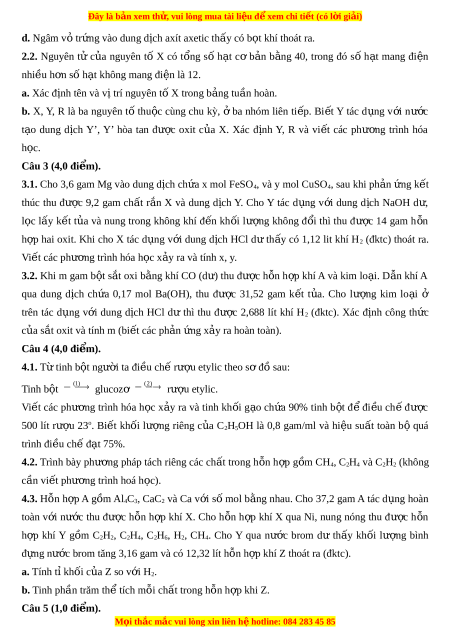 Đây là bản xem th , vu ử i lòng mua tài li u ệ đ xe ể m chi ti t ế (có l i ờ gi i ả ) d. Ngâm v t ỏ r ng vào dung d ứ ịch axít axetic th y có b ấ t ọ khí thoát ra. 2.2. Nguyên tử c a ủ nguyên tố X có t ng ổ số h t ạ cơ b n ả b ng ằ 40, trong đó s ố h t ạ mang đi n ệ nhi u h ề n s ơ ố h t ạ không mang đi n l ệ à 12.