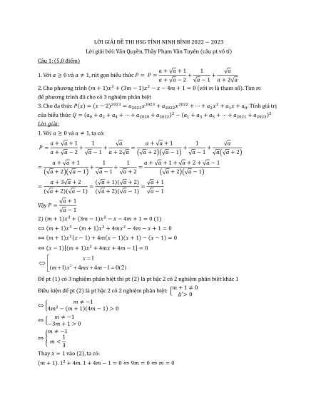 LỜI GIẢI ĐỀ THI HSG TỈNH NINH BÌNH 2022 − 2023