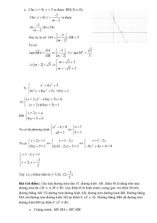 a. Cho x = 0; y = 3 ta được B(0;3)∈Oy 3 − Cho y = 0; x = ta được m − 2 3 ( − A ;0)∈Ox m − 2 3 − Suy ra, ta có: OA = ; OB = 3 m − 2 Ta có: OA 3 − 0 3 tanOBA = ⇒ :3 = tan30 = OB m − 2 3 m = 3 + 2 ⇒ m − 2 = 3 ⇒ m = − 3 + 2 2 2 x + 4y = 5 b. 2 2