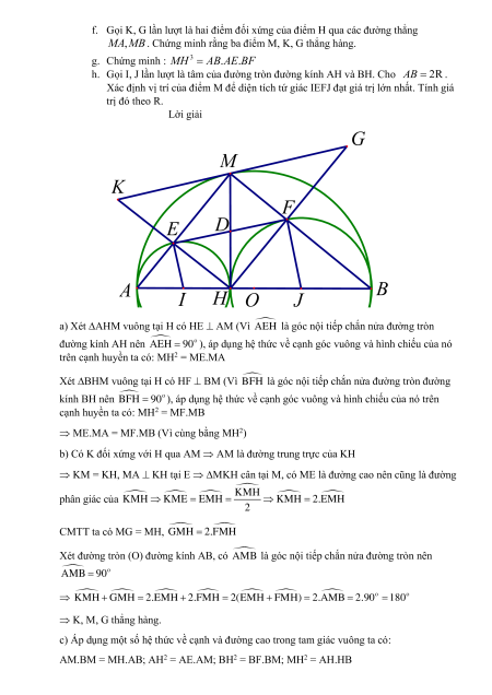 f. Gọi K, G lần lượt là hai điểm đối xứng của điểm H qua các đường thẳng