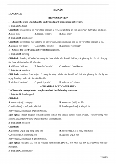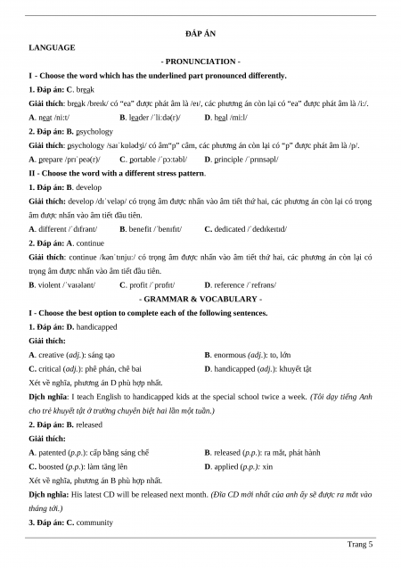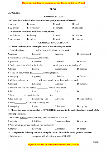 ĐỀ SỐ 1 LANGUAGE - PRONUNCIATION -