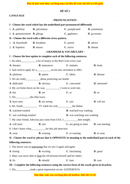 ĐỀ SỐ 2 LANGUAGE - PRONUNCIATION -