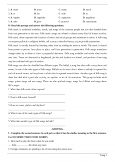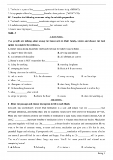 You won’t become stressed about things any more. You’ll feel more peaceful and relaxed about everything instead. 1. A. balance B. balancing C. to balance D. to balancing Trang 2 2. A. more B. most C. many D. much 3. A. to B. for C. with D. at 4. A. regular B. regularly C. regularize D. regularity 5. A. take B. give C. practice D. concentrate