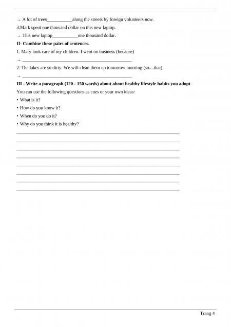 III - Write a paragraph (120 - 150 words) about about healthy lifestyle habits you adopt