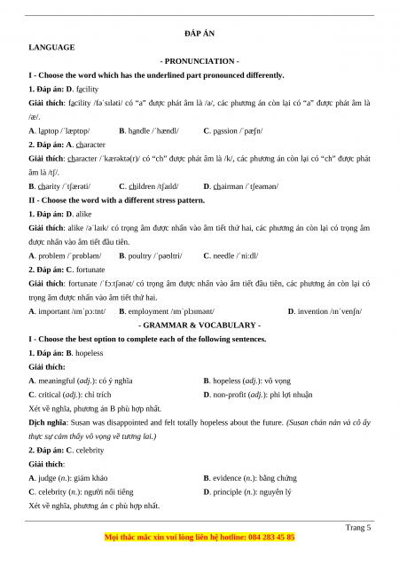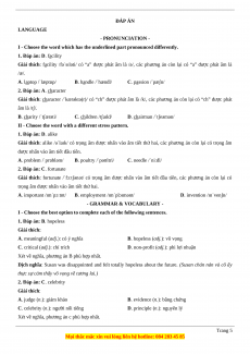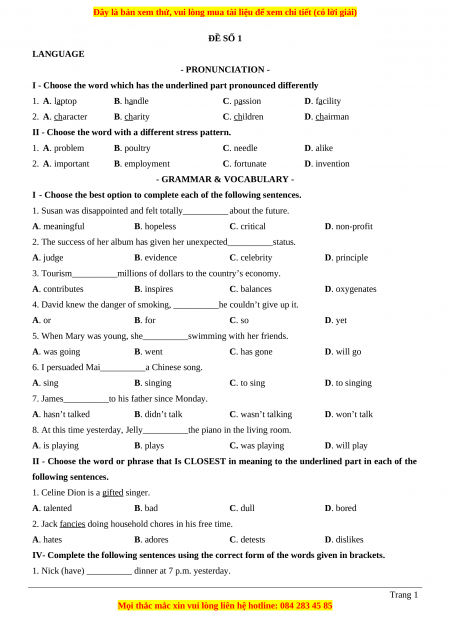 ĐỀ SỐ 1 LANGUAGE - PRONUNCIATION -
