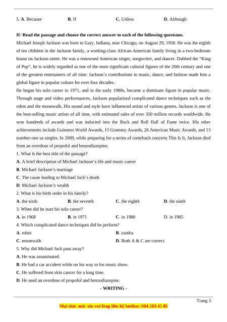 D. He used an overdose of propofol and benzodiazepine. - WRITING - Trang 3
