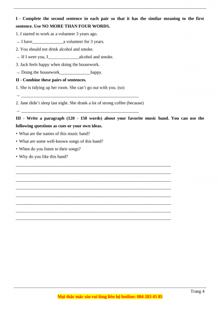 III - Write a paragraph (120 - 150 words) about your favorite music band. You can use the