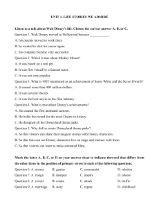 Listen to a talk about Walt Disney's life. Choose the correct answer A, B, or C.
