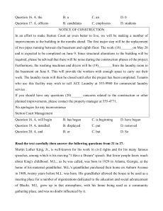 Thank you for your interest. Only (18)_________selected for an interview will be contacted. No phone calls please. Question 15. A. on B. at C. for D. with Question 16. A. the B. a C. an D. 0 Question 17. A. officers B. candidates C. employees D. students NOTICE OF CONSTRUCTION