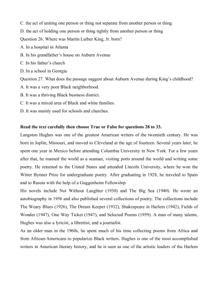 Question 22. What is Martin Luther King well-known for? A. His publications. B. His neighborhood. C. His childhood. D. His work in civil rights.