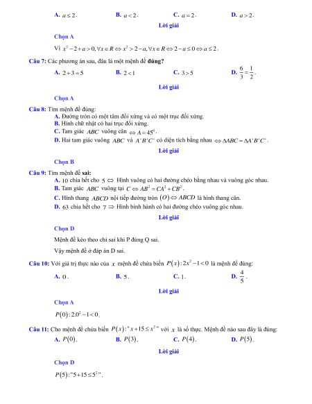 Câu 5: Mệnh đề nào sau đây đúng? A. 2 x ,