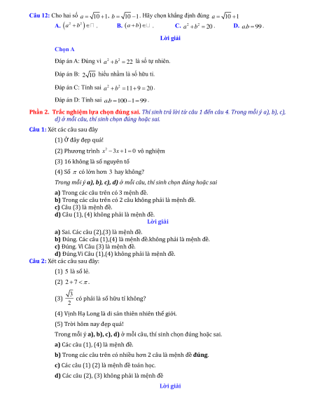 d) ở mỗi câu, thí sinh chọn đúng hoặc sai.