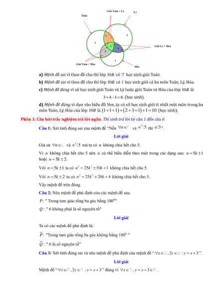 d) Sô hô c sinh giô i ì t nhá t mô t mô n trông bá mô n Tôá n, Ly , Hô á cu á lơ p 10B khô ng lơ n hơn 10. Lời giải Tá du ng bié u đô Vén