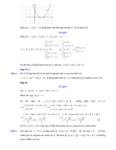 Do đó hàm số nghịch biến trên khoảng ; 1 . 2 1 m 3 Câu 4. : Cho hàm số 3 2 y x x 3 m m 2 2 xm 3 2