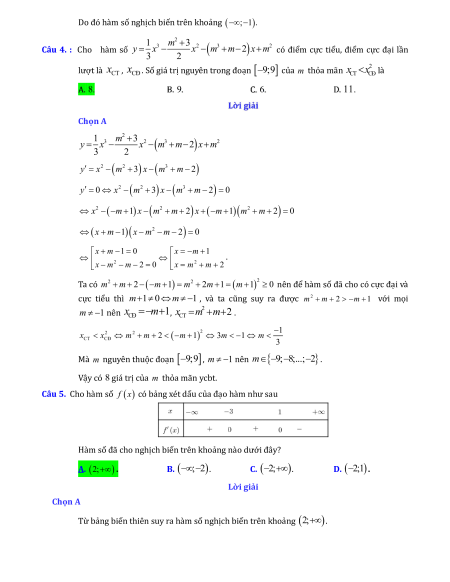 CT , CÐ . Số giá trị nguyên trong đoạn 9 ; 9 của m thỏa mãn 2 x x CT CÐ là 8 9 6 11 Chọn A 2 1 3 m 3 2 y x x 3 m m 2 2 xm 3 2 2