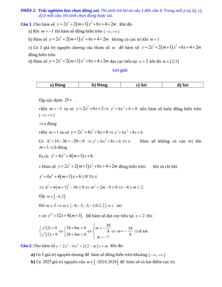 Câu 7. Có bao nhiêu giá trị nguyên của tham số m để hàm số 4 2