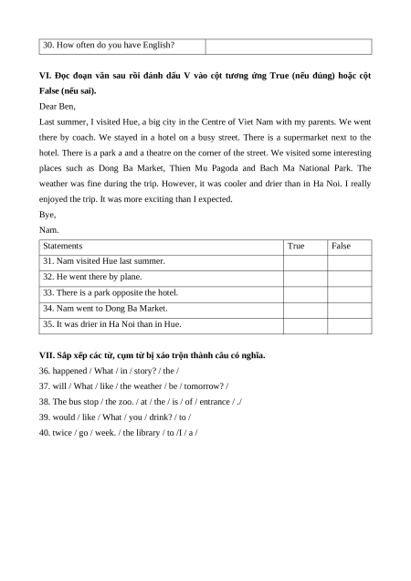 31. Nam visited Hue last summer. 32. He went there by plane.