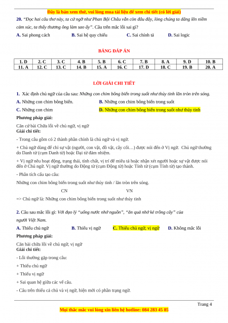B. Sai hệ quy chiếu C. Sai chính tả D. Sai logic BẢNG ĐÁP ÁN 1. D 2. C 3. C 4. B 5. B 6. C 7. B 8. A 9. D 10. B 11. A 12. C 13. C 14. B 15. A 16. C 17. D 18. C 19. B 20. A LỜI GIẢI CHI TIẾT