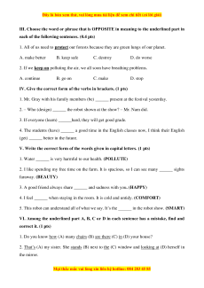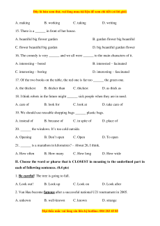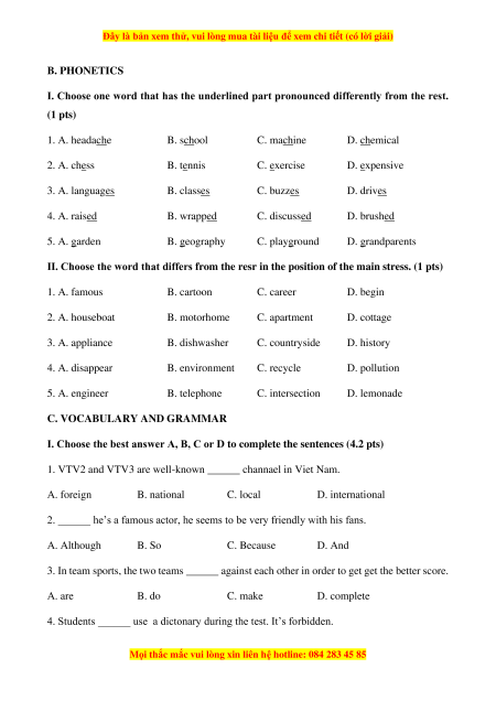 1. VTV2 and VTV3 are well-known ______ channael in Viet Nam. A. foreign B. national C. local D. international