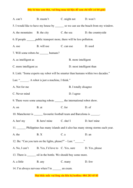 12. Ba: “Can you turn on the lights, please?” – Lan: “______” A. No, I can’t
