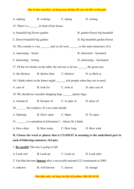 Chúng tôi đảm bảo đủ số lượng đề đã cam kết hoặc có thể nhiều hơn, tất cả có BẢN WORD, LỜI GIẢI CHI TIẾT và tải về dễ dàng.