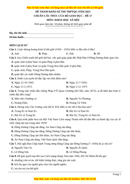 - Bộ 18 đề luyện thi môn KHXH chất lượng cao được biên soạn bám sát ma trận và cấu trúc của BỘ GIÁO DỤC năm học 2022-2023. Bộ đề được các giáo viên tin dùng bậc nhất trong các năm học.