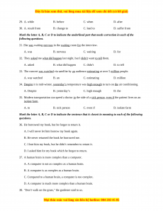 Read the following passage and mark the letter A, B, C or D to indicate the correct word or phrase that
